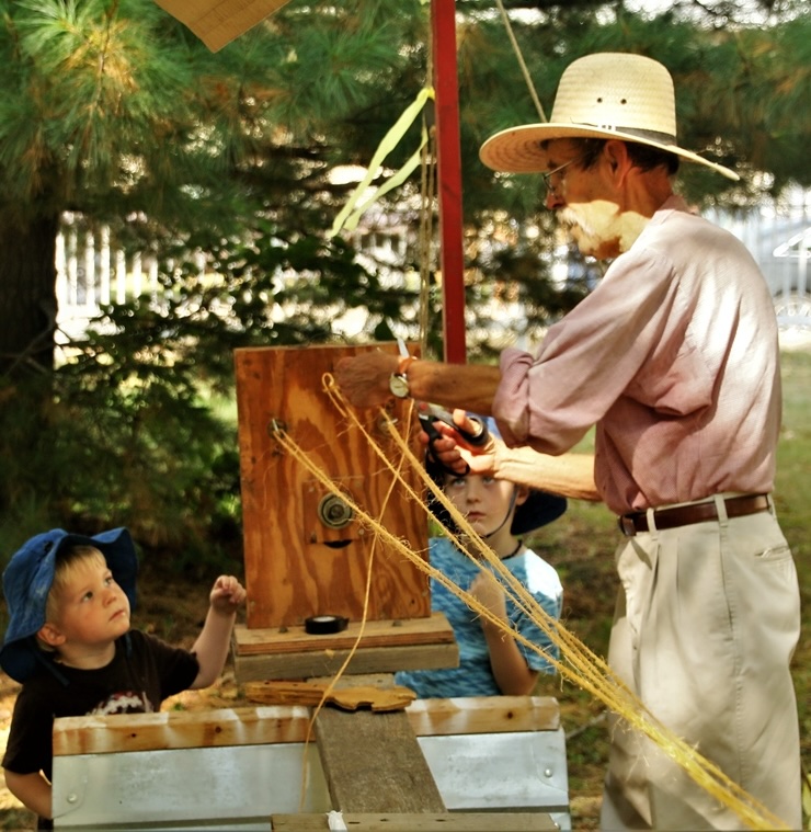 Behind the Bjorklund Hotel from noon to 4 p.m. each day, visitors can try their hand at shelling corn, making bricks, pressing apples into cider, and creating a cornhusk doll.