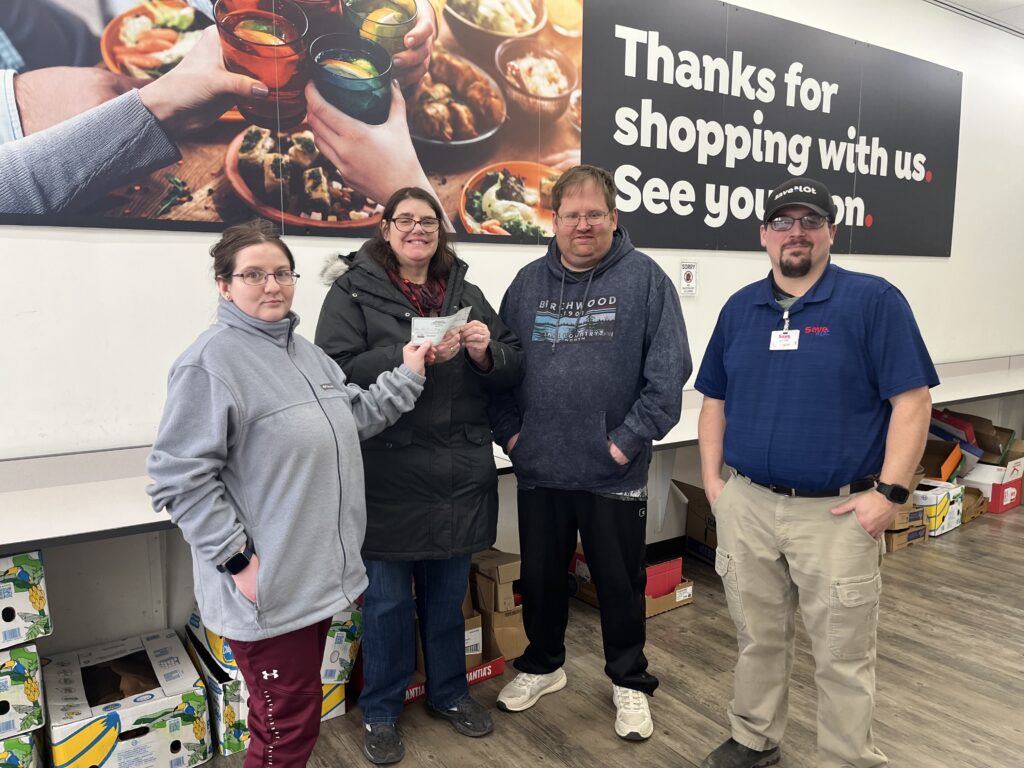Abilities Plus clients recently accepted a check for $1,403.40 on behalf of the Abilities Plus Agency, raised through the annual Save‑A‑Lot customer roundup fundraiser.