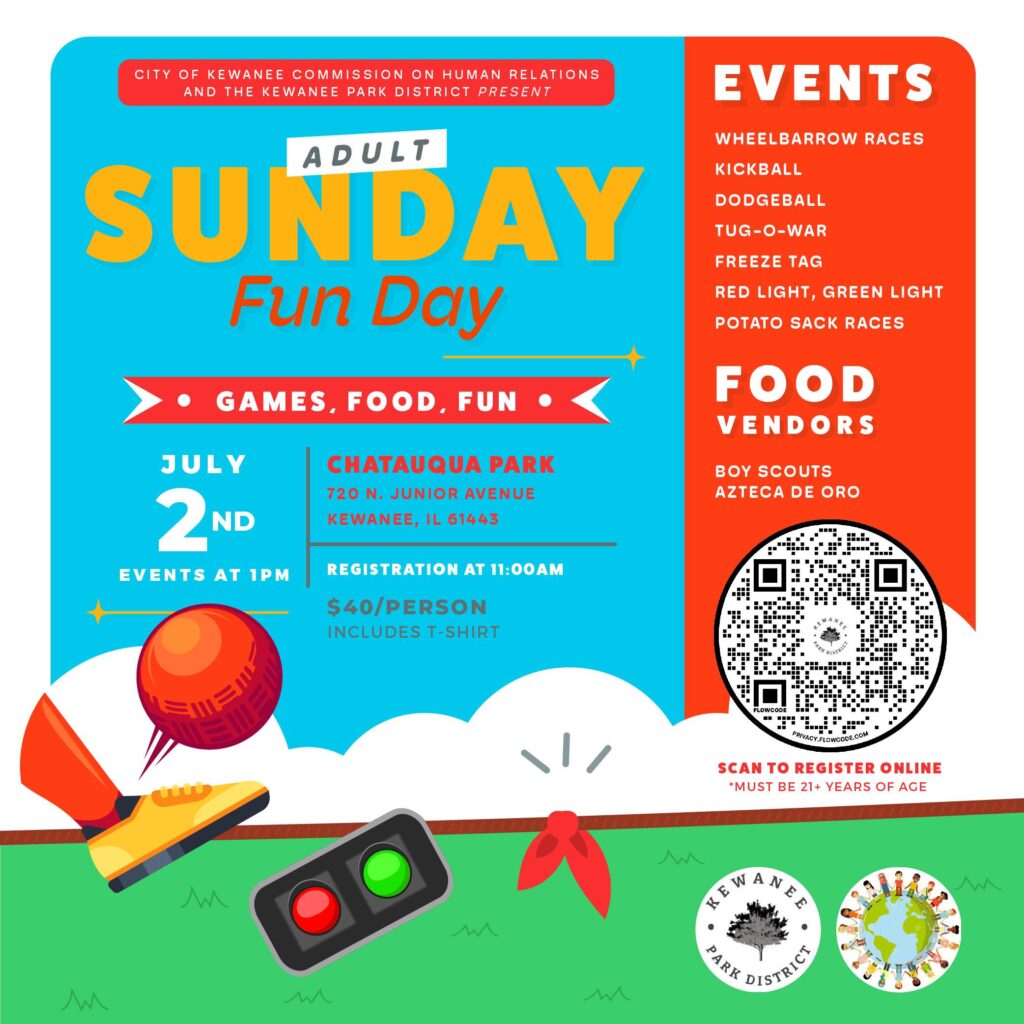The City of Kewanee Commission on Human Relations and the Kewanee Park District are partnering up to present Adult Sunday Fun Day in the park. Attendees must be 21 or over.