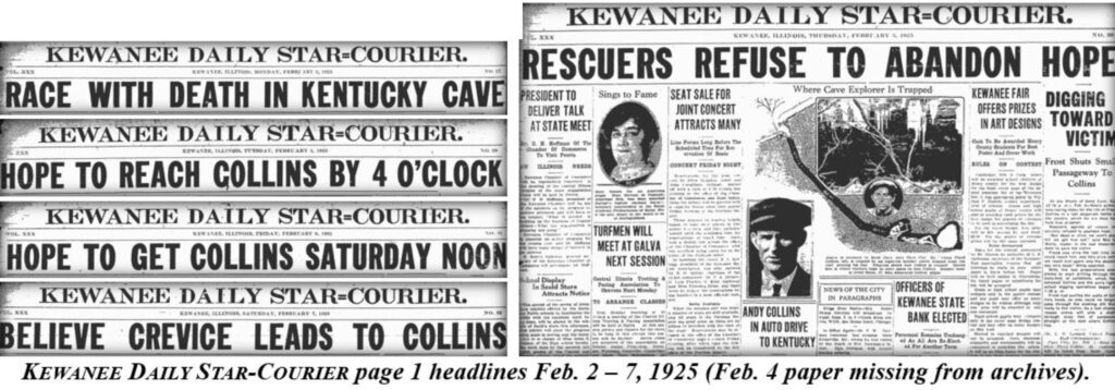 William Floyd Collins, Andy’s brother, was a well-known and respected cave explorer in and around the Mammoth Cave area in Kentucky. Kewanee attorney and amateur cave photographer Russell T. Neville had become friends with Floyd. Neville, his sister, Hazel, and his daughter, Julia, had explored numerous Kentucky caves with Floyd by their sides.