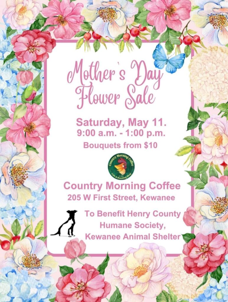Moms tend to like flowers and so this year, as in years past, the Henry County Humane Society/ Kewanee Animal Shelter will hold its annual Mother’s Day Flower Sale at Country Morning Coffee.
