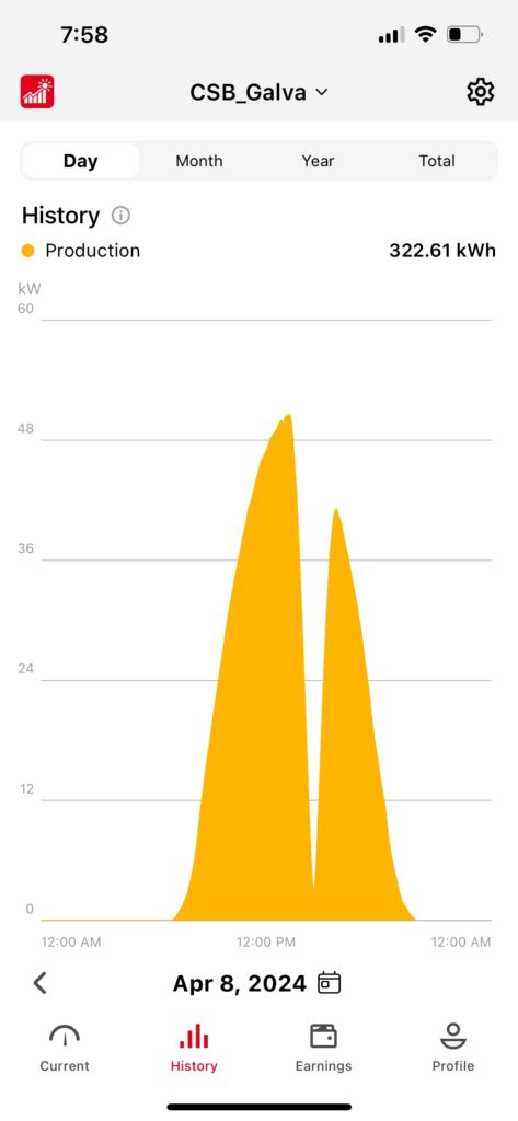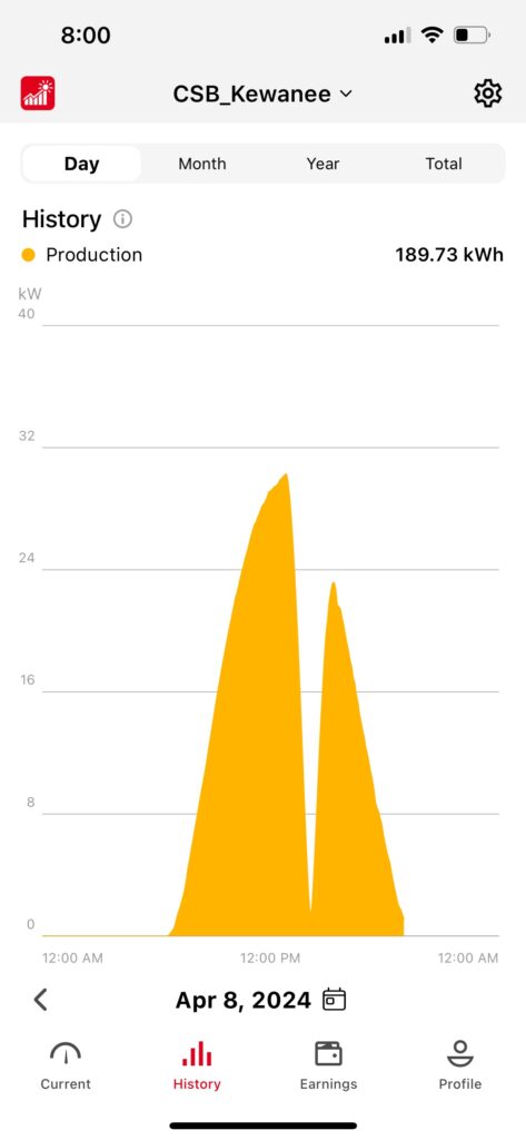 And over at Community State Bank, from bank locations in both Galva and the Tenney Street building, solar productivity graphs were recorded during the event from the rooftop solar arrays on the office buildings and submitted to The Kewanee Voice by Chanda Dowell.
