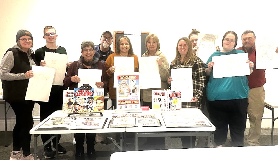 Well-known caricaturist, “Draw Me Bill” conducted a workshop on the fundamentals of caricature drawing at the Galva Arts Council on Saturday, Jan. 11.