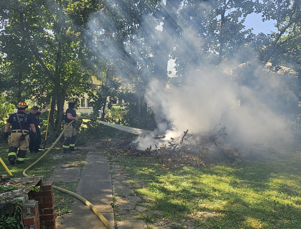 A second burn was reported and we headed over to Tremont Street. While not an illegal burn, the flames were high and near the tree line that divides the backyards of Tremont and Chestnut streets. When we arrived on the scene, we made our way to the back of the property. The burn pile was large, too large and the flames were high and uncomfortably close to a large tree.