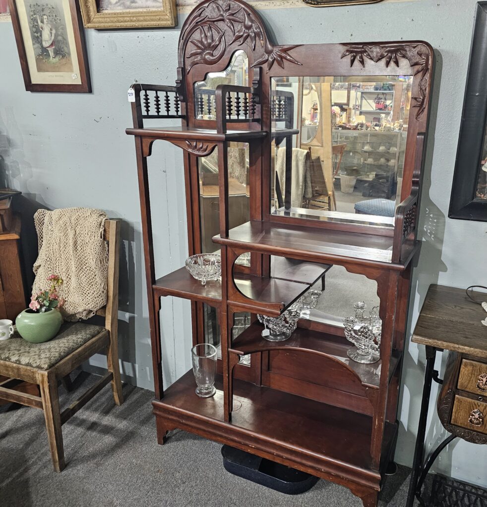A current hot seller, mid-century modern furniture, sells as quickly as she gets them in, she said. One of her favorite pieces, a mahogany etagere with beveled glass mirrors, was meant to go in a hallway.