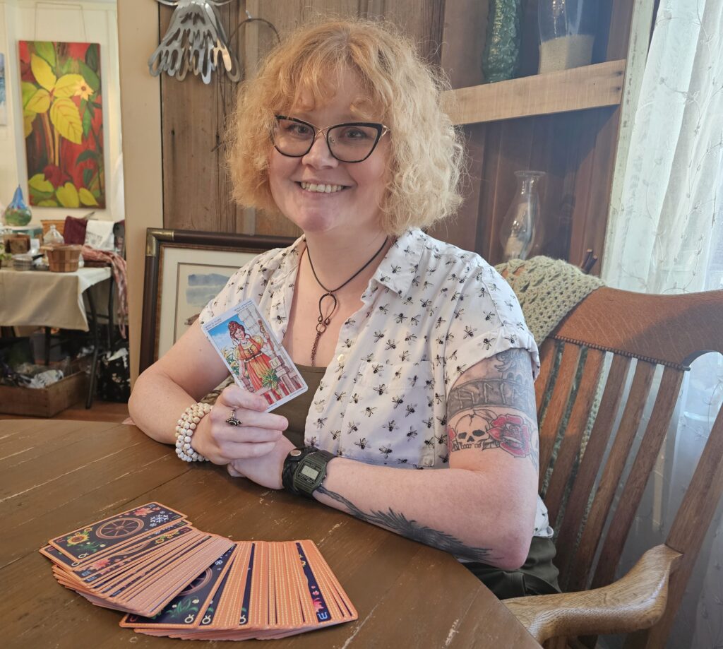 Lindsey does tarot card readings a couple Saturdays a month at Garden Thyme, a gallery and studio located in the historic Bishop Hill.