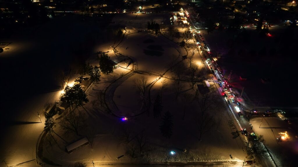 At Northeast Park, volunteers flipped the switch on the drive-thru display around 5:30 p.m., and cars quickly began filing through the illuminated route.