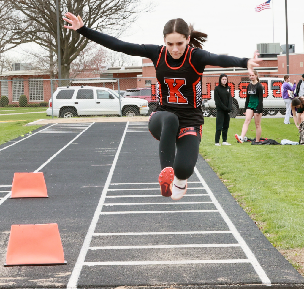 Kewanee’s Ellie Welgat goes airborne. [Photo by KHS student Edy Ornelas]