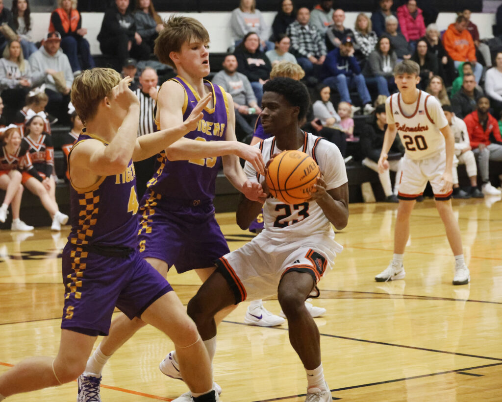 Catrelle Reed was Kewanee’s leading scorer against Sherrard. [Photo by Adam Keyser of The Kewanee Voice Student Journalism Program]