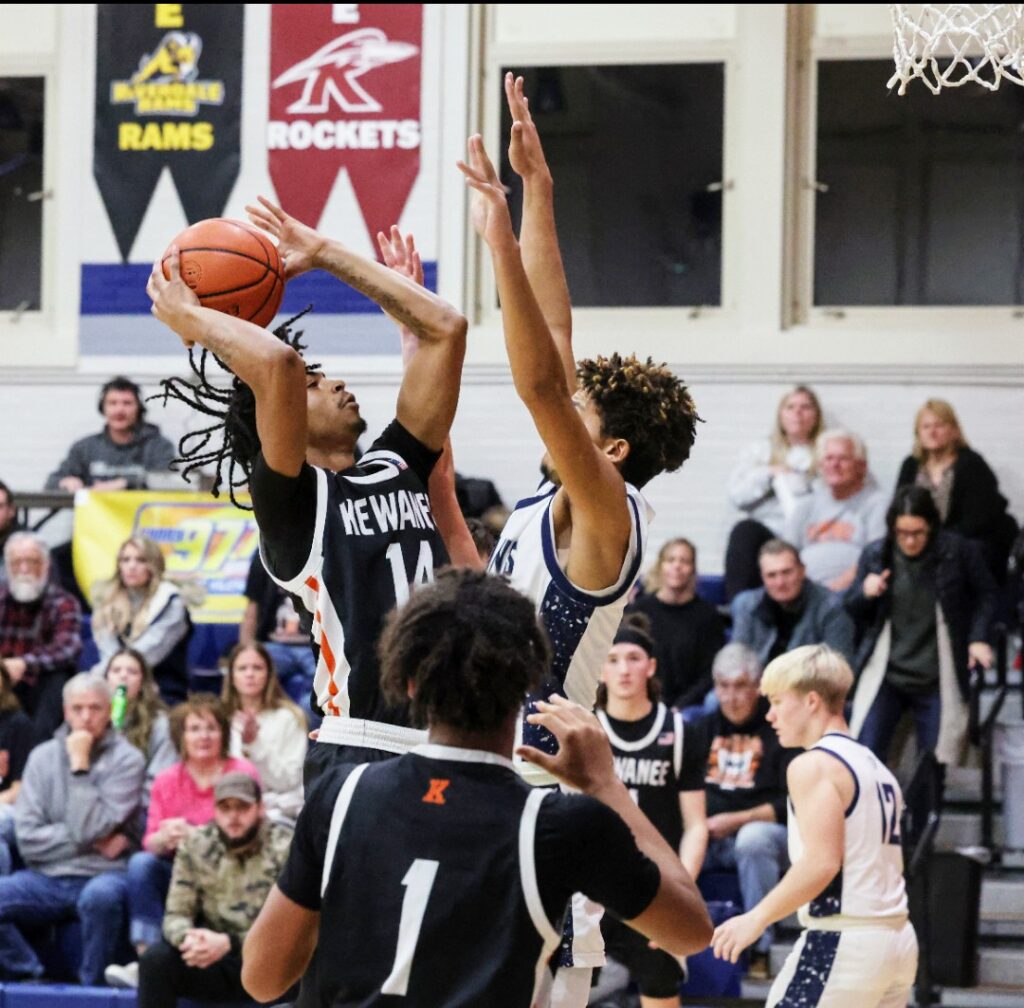 Junior Murray drives into the lane for two during Kewanee’s 52-51 win over Monmouth-Roseville. [Photo provided by the Kewanee Athletic Department].