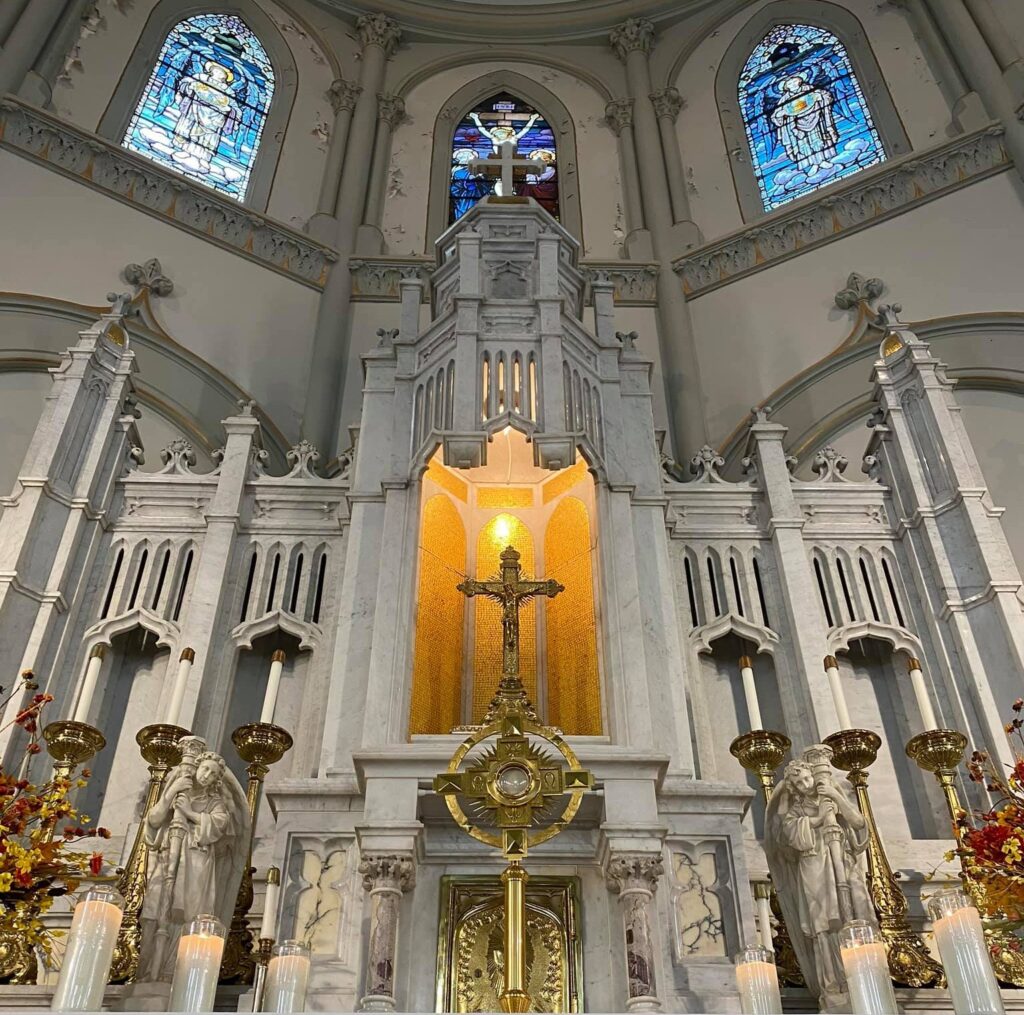 The church, located at 218 E. First St., is a striking example of Neo-Gothic Revival architecture, designed by University of Illinois graduate George P. Stauduhar, known for his work on Catholic churches across the Midwest. Visitors are encouraged to admire the church’s stained-glass windows, crafted by Munich artist F.X. Zettler, who earned top honors at the 1893 Columbian Exposition in Chicago.
