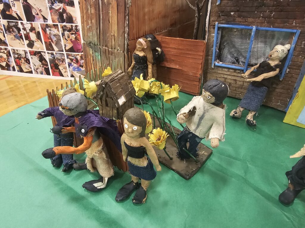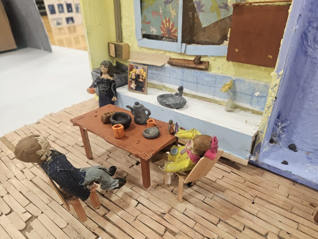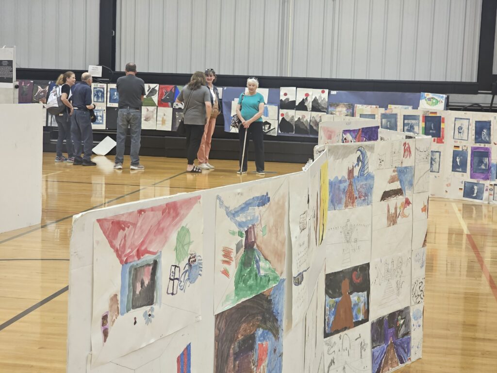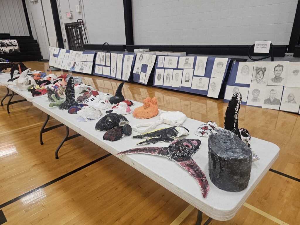 The stop-motion set pieces were displayed in the Steamer gym at Central, alongside artwork from elementary students, for viewing during the Central School Strawberry Festival.