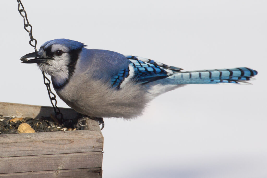 Blue jay, photographed in the author’s yard (February 2021). [Photo by Jill Bartelt]