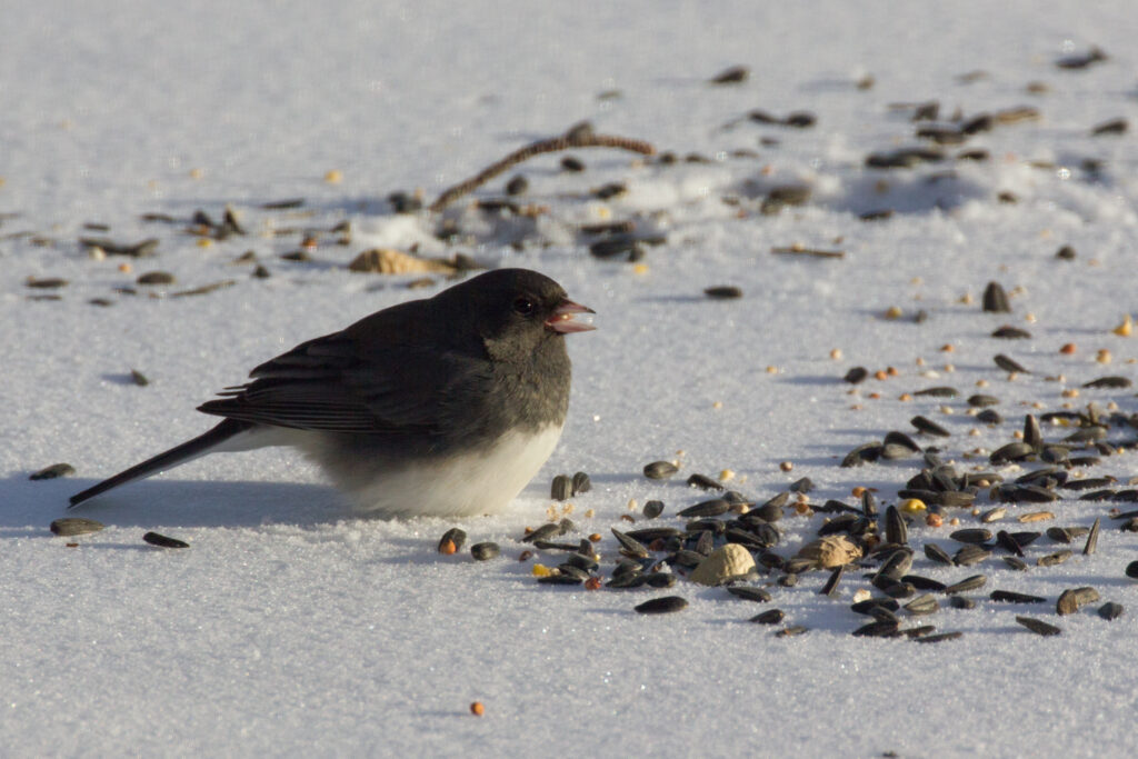 Dark-eyed junco, photographed in the author’s yard (February 2021). [Photo by Jill Bartelt]