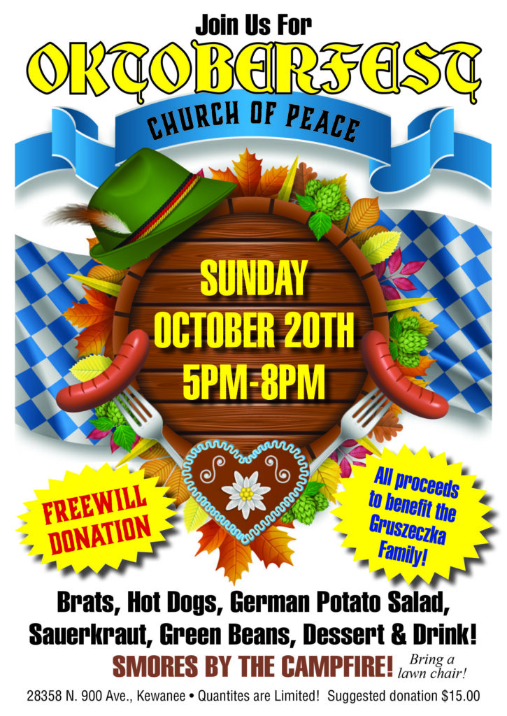 The Oktoberfest event is set for Sunday, Oct. 20 from 5 to 8 p.m. The meal will include German potato salad, sauerkraut, green beans and a drink.