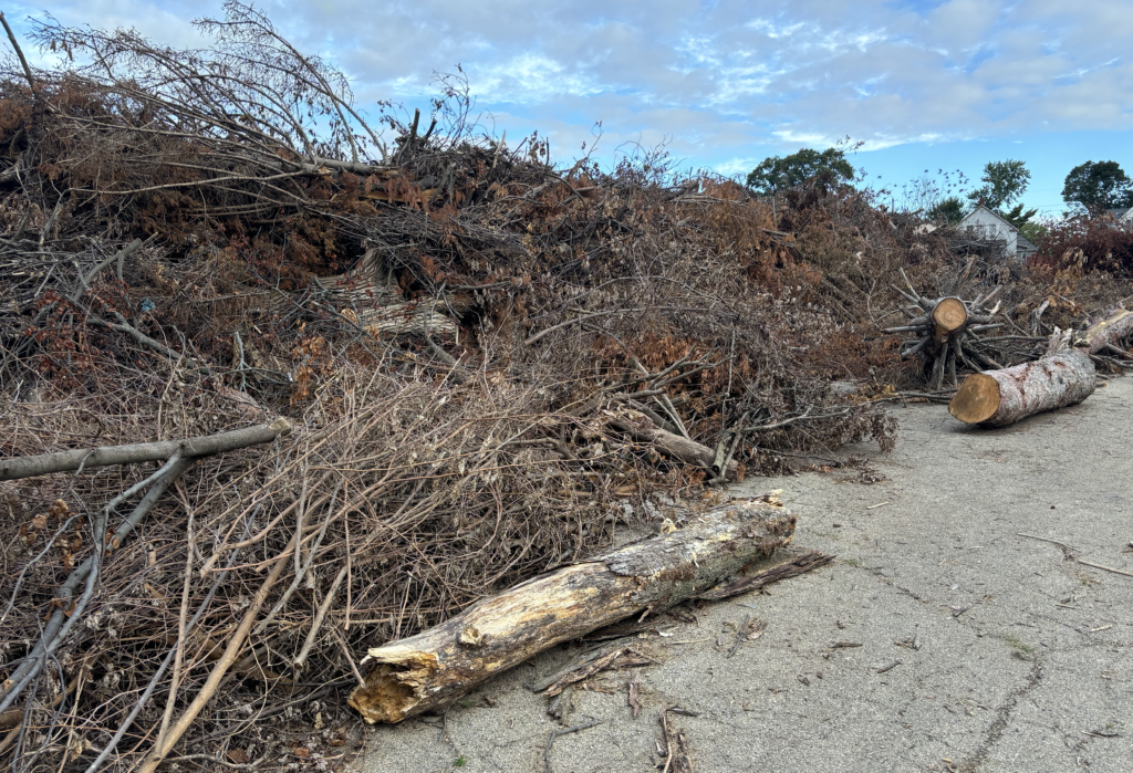 Some storm debris remains at the hospital site and on the rights-of-way.