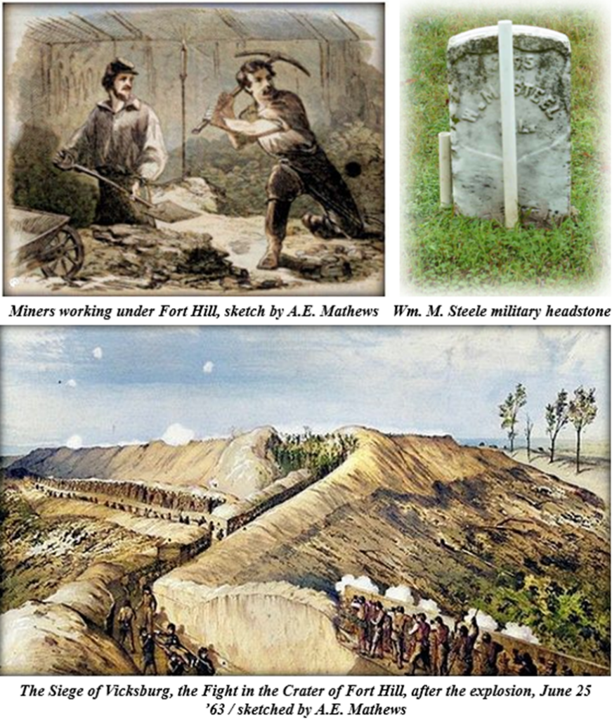 The Union’s success at Fort Hill was directly attributable to soldiers from Kewanee who had been miners in the coal mines along the South Slough and elsewhere north of the village. Those experienced miners labored to dig tunnels under Fort Hill. They then planted 2,200 pounds of explosives. On June 26, the explosives were set off, causing the fort to collapse and create a great crater. Howe called the miners’ work “of more than usual hardship and peril, it is due to the brave men [who deserved] especial mention . . . .”
