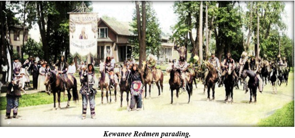 Independence Day that year was a heck of a reason for Kewanee’s Redmen to organize a grand “Powwow.” The local Redmen chapter was part of a nationwide fraternal organization started in the first half of the 19th century. The group traced its lineage back to the Boston Tea Party, and it appropriated Native American cultural aspects to drive its organizing principles.