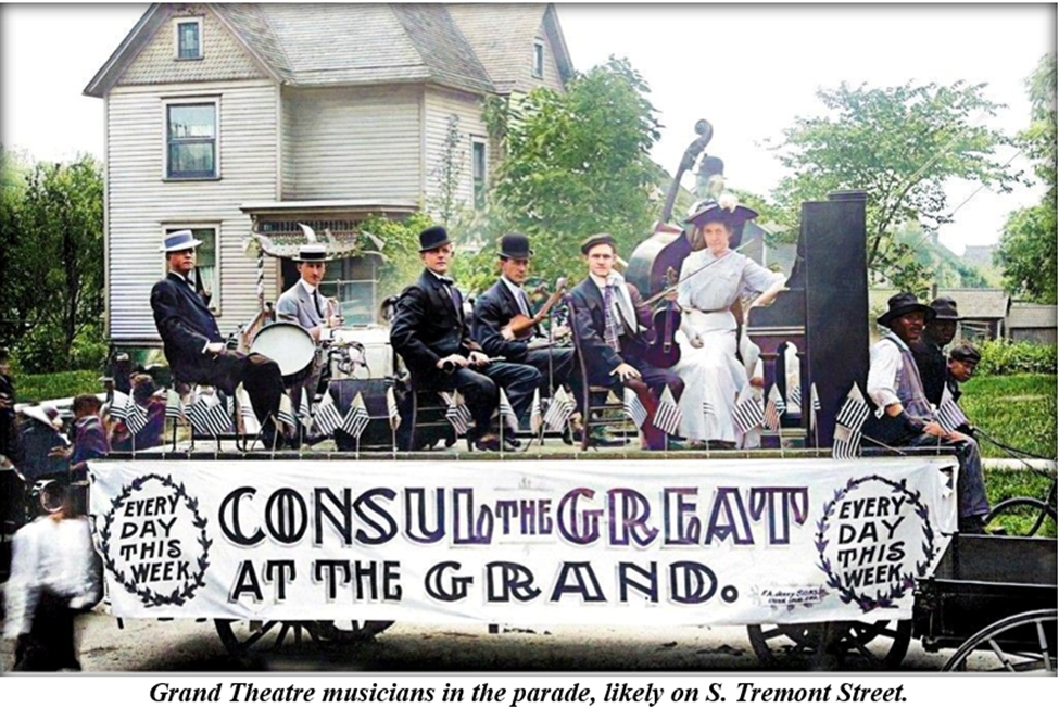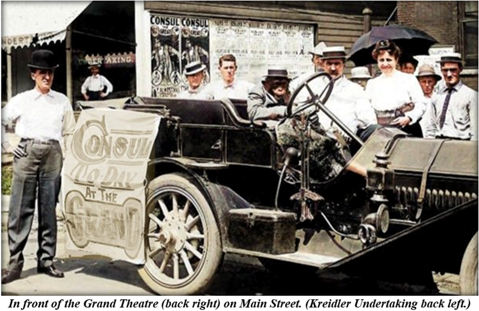 During the Fourth of July week run, the Grand offered performances by singers Miss Langford, Miss Evans and Ed Badger, accompanied by a number of musicians. But the main attraction was Consul.