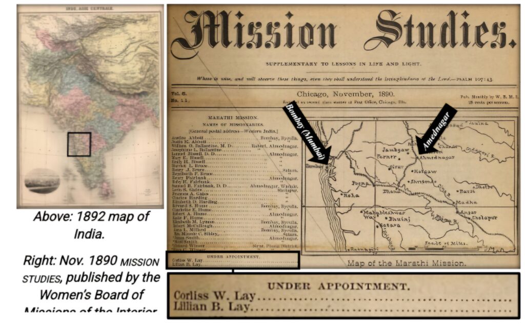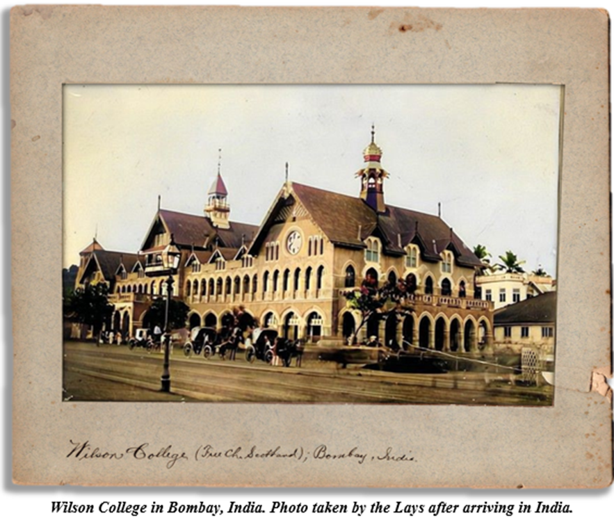 The Lays left Kewanee for Boston in late August 1890 after a going-away fête hosted by his parents. From Boston, they sailed to England in early September and spent time sightseeing on the British Isles and at other stops in Europe. They then traveled through the Suez Canal, making their way to Ceylon (now Sri Lanka), and sailed up the western coast of India to Bombay (now Mumbai), arriving at the beginning of October.