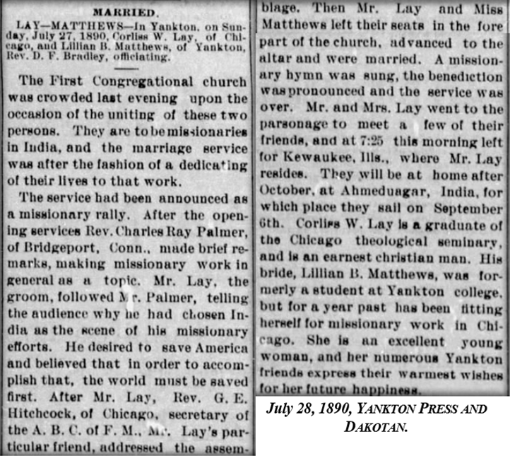 Corliss and Lillian had already decided to become missionaries to India. After their wedding, they traveled to Kewanee to say their goodbyes to Corliss’s family.