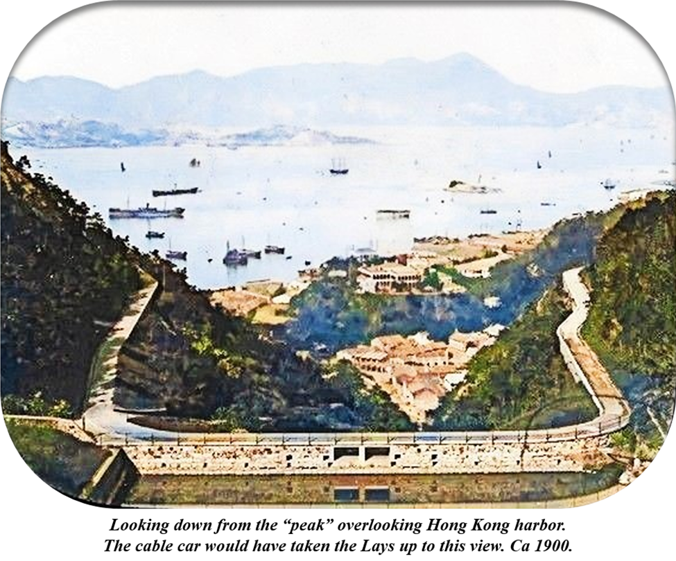 Lillian (from Hong Kong), 12 Apr. 1893 “Hong Kong is such a pretty place, it is built on a high island with the sea and small islands all around it. The city itself lies along the edge of the water, at the foot of the mountain but the residence houses are up on the side of the mountain and some at the very top. The only way to get up the mountains is to be carried up on the cable car. They have a car going to the top of the hill but it is so steep it is simple dreadful to ride up in it. … we stayed three days at a delightful hotel at the top of the hill. We climbed around on the mountain every day to different peaks where we could see the sea and islands all around us. I think it is the most picturesque place I ever saw.”