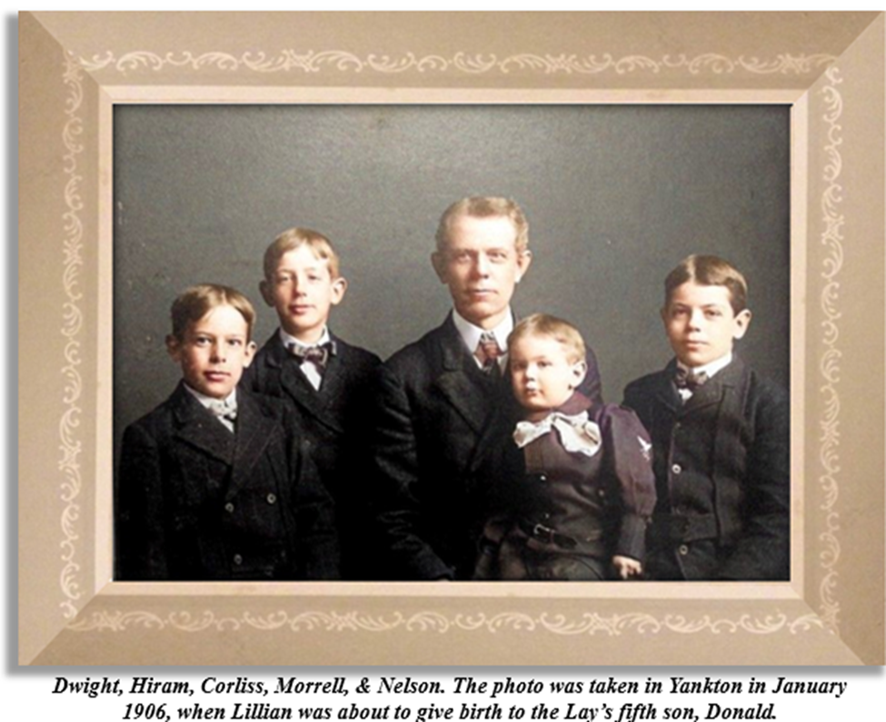 The family remained in Yankton until 1906, when they moved to Kewanee. Corliss bought part of the old Blish farm in northwest Wethersfield and built a home (later the Lindstrom place). He was active in farming and later became president of the Henry County Farm Bureau. Among many over civic endeavors, he and other Lay family members established a trust in support of the Kewanee Public Library.