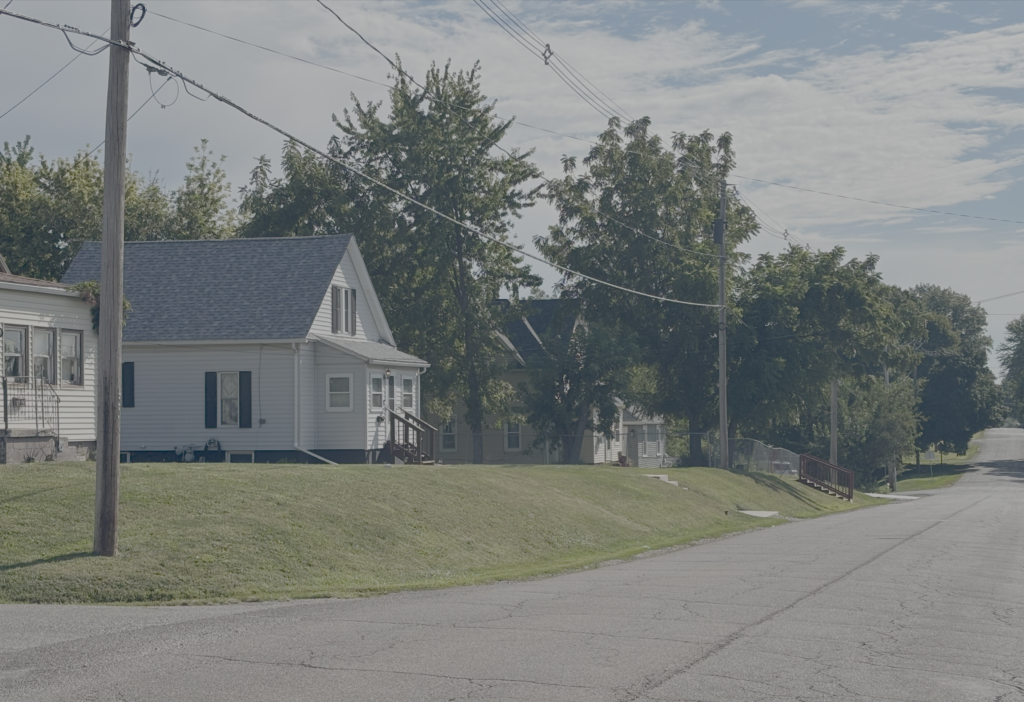 The north side of Lake Street from Harrison Street to Prairie Green Apartments will be getting sidewalks and other improvements next year. [Photo by Michael Berry]