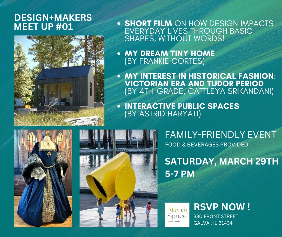 Next will be Cattleya Srikandani, known by her friends as Leya or Cat, a 10-year-old fourth grader at Henry Senachwine Grade School. She is passionate about art, music, and fashion design. For two years in a row, she won the poster contest of the Knights of Columbus campaign “against drug/alcohol abuse and drinking while driving”. She plays violin, flute, and piano, and loves to sing. At this first Allenia Space’s Design+Makers event, she will share her interest in historical fashion.