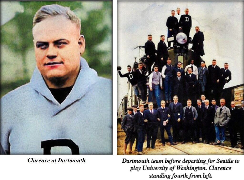 In his final two years as Dartmouth’s coach, the team lost only three games and defeated the University of Pennsylvania in a 1919 matchup which the New York Times called the “most spectacular game ever seen” at the Polo Grounds. In Clarence’s final game at Dartmouth, the team defeated the University of Washington in the first game played in the just-completed Husky Stadium in Seattle.
