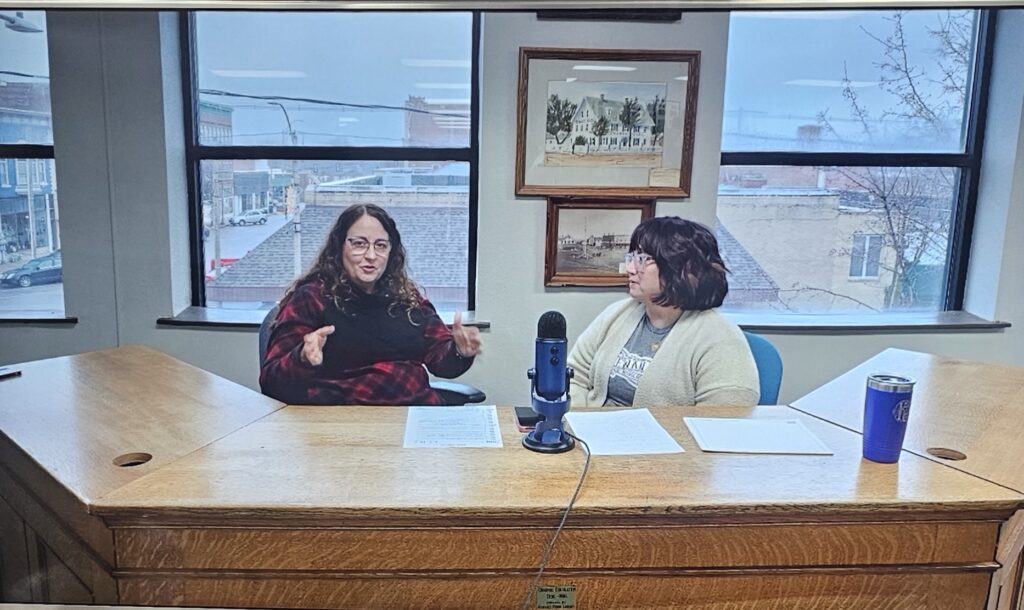 Kewanee Memory Lane is recorded on the top floor of the historical society and Culver and Bailleu sit behind a desk that was the original circulation desk from the 1906 Kewanee Public Library. The blooper reel, enjoyed during the podcast’s premiere, reveals its rough start when the women struggle to introduce themselves and Bailleu, at one point, forgets the podcast’s title.