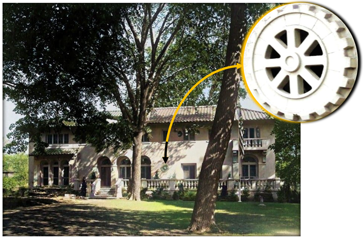 In 1917, Baker had co-founded the Rotary Club of Kewanee. The Rotary’s cogwheel symbol was built into the wall just east of the main entrance.