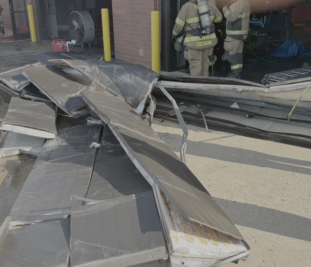 A fire Tuesday morning in the auto shop area at Black Hawk College East Campus damaged the building and destroyed a pickup truck that had been inside.