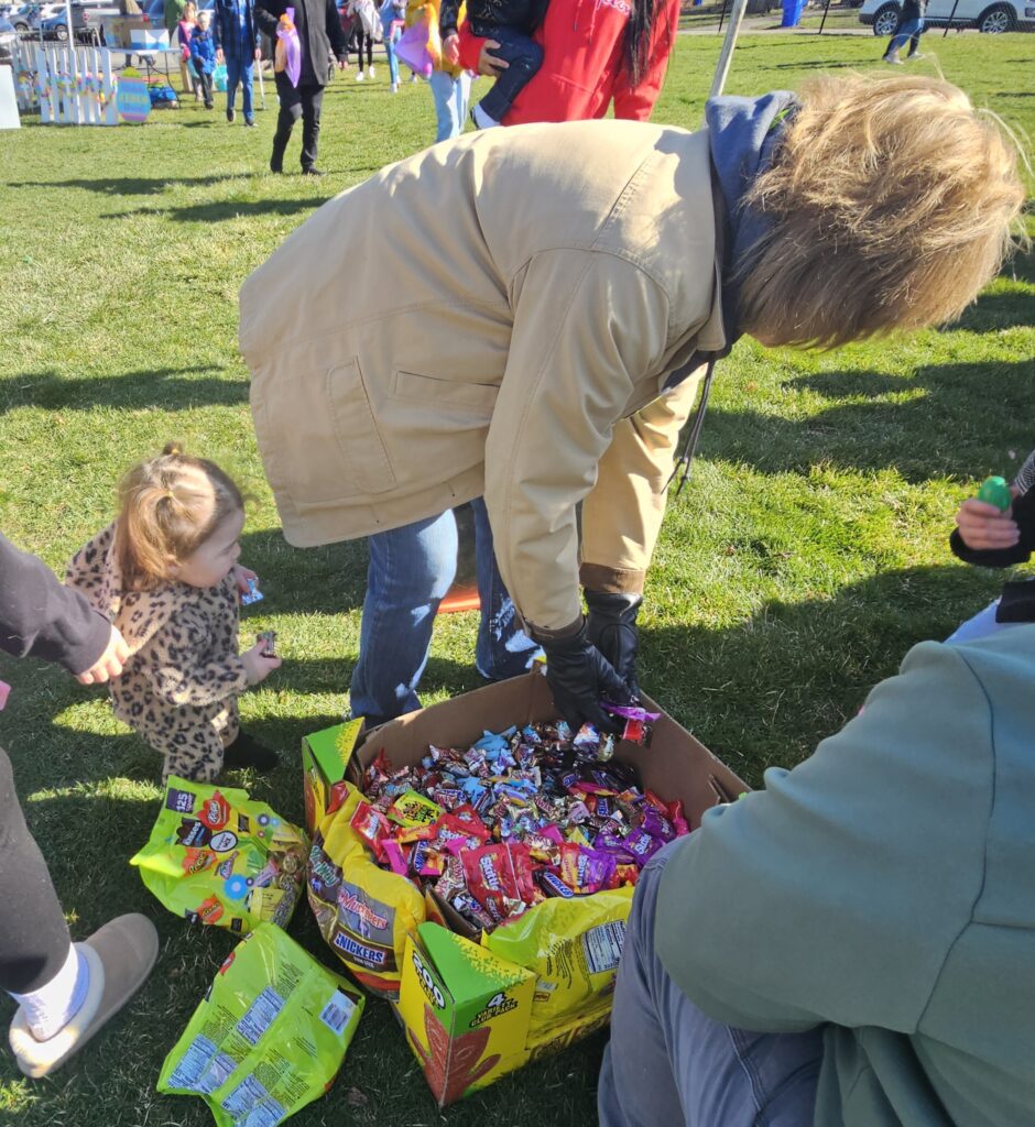 While public participation dipped this year, no doubt because the temperature hovered in the mid 30s, there were plenty of eggs to go around and more than enough candy. And the Easter Bunny made an appearance, posing for photos with attendees. Here are a few photos of the egg hunt: