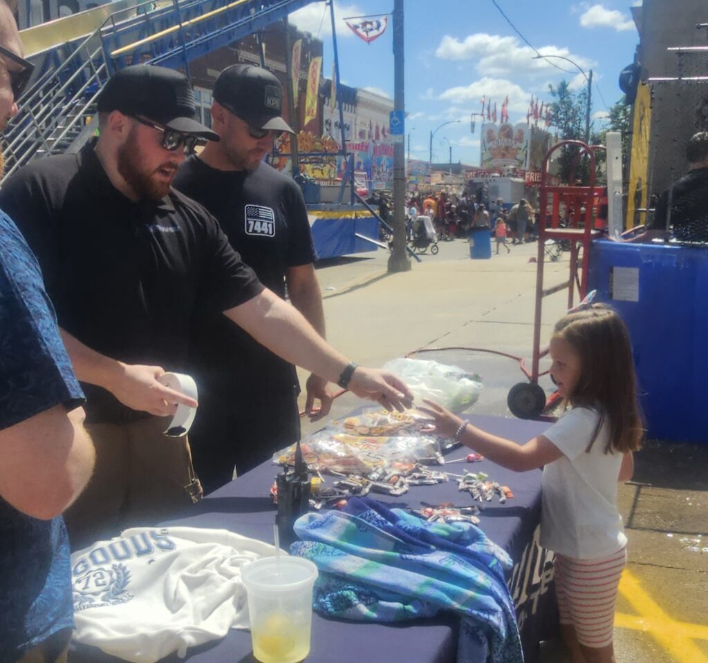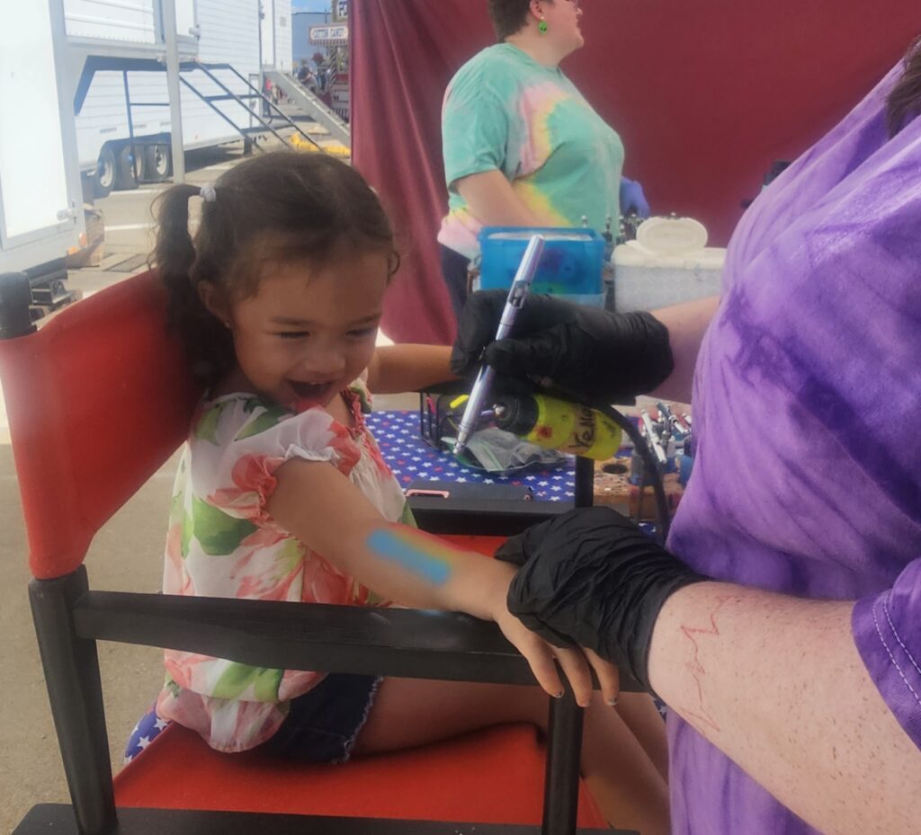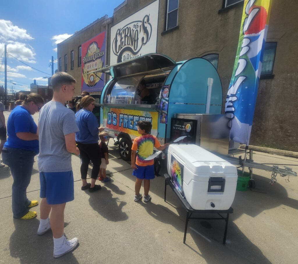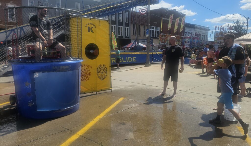 Face painting was a hit with a long line on Kid’s Day Monday. Photo below, the Kewanee Police Department held their annual dunk tank, which allowed kids to dunk a police officer. Police officers passed out stickers and other goodies. Below left, the Kewanee Fire Department got into the act with a rescue obstacle course. Below right, D’s Freeze offered tasty, cool treats at the PNB parking lot. A rock climbing wall gave kids a chance to make it to the top.