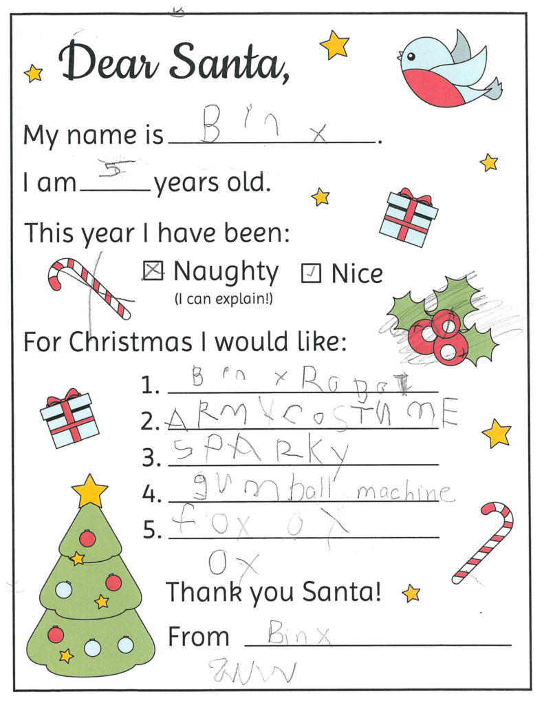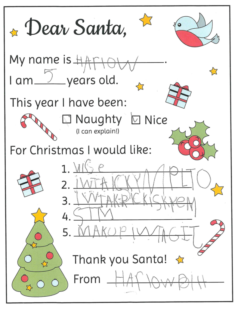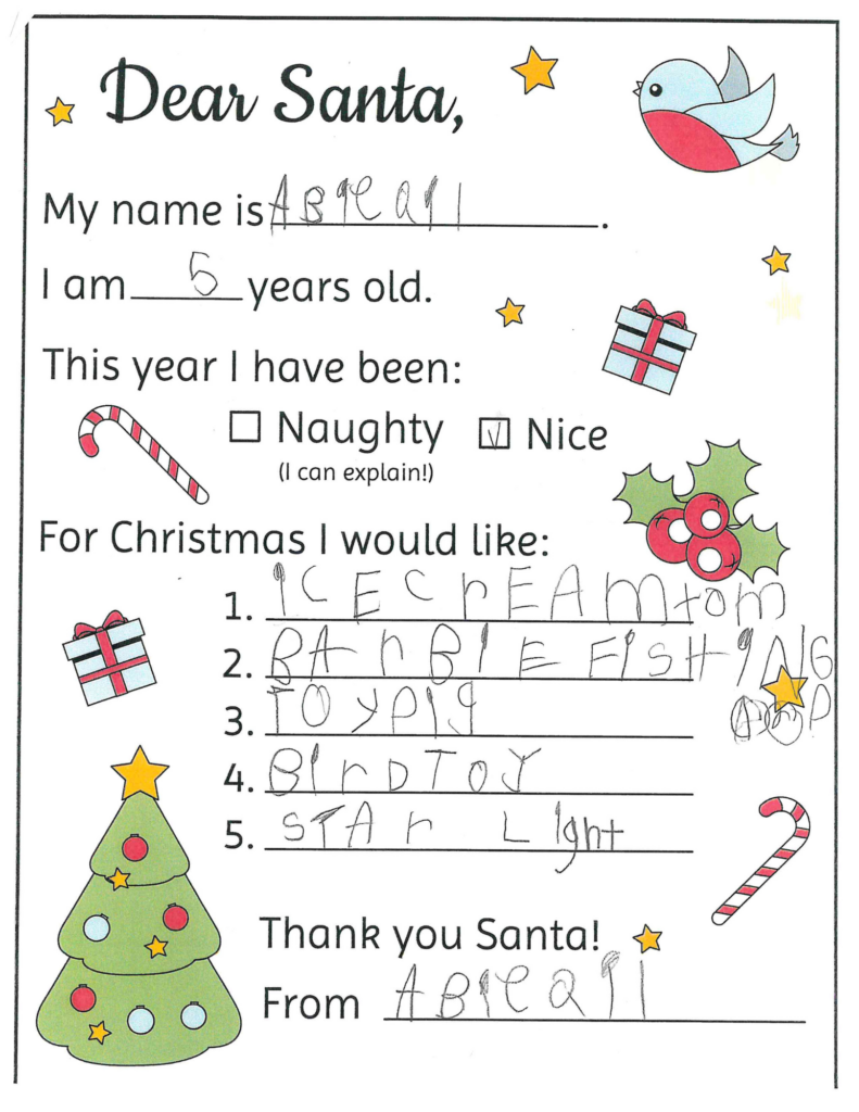 Five wishes each, Santa letters from Visitation kindergartners-Letters to Santa