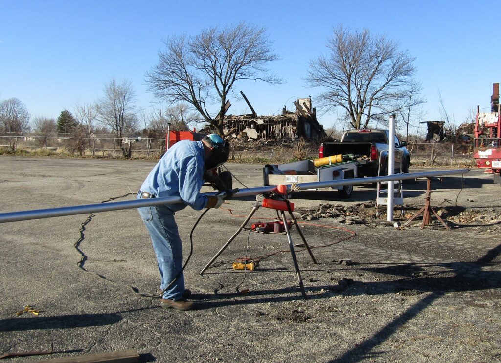 Last week a 35-foot steel flagpole was planted in the ground and an American flag and an orange banner bearing the company’s famous Circle K logo were run to the top where a miniature boiler has been bolted. It was the first step in what KPS hopes will be a successful community effort to establish a memorial on a triangular lot at the corner of Rose and Franklin streets adjacent to the former plant site which had been used for office and visitor parking.