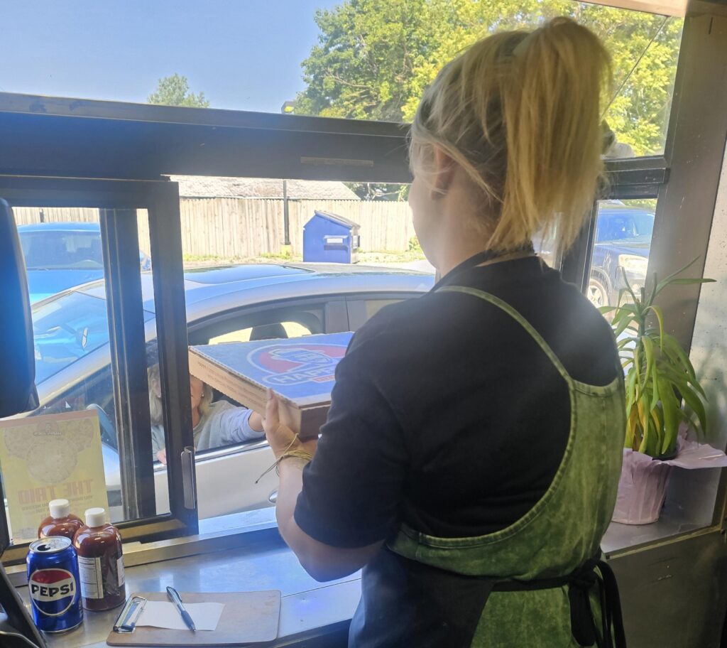 “Being a franchise owner is extremely difficult,” she said in between passing pizzas through the window.