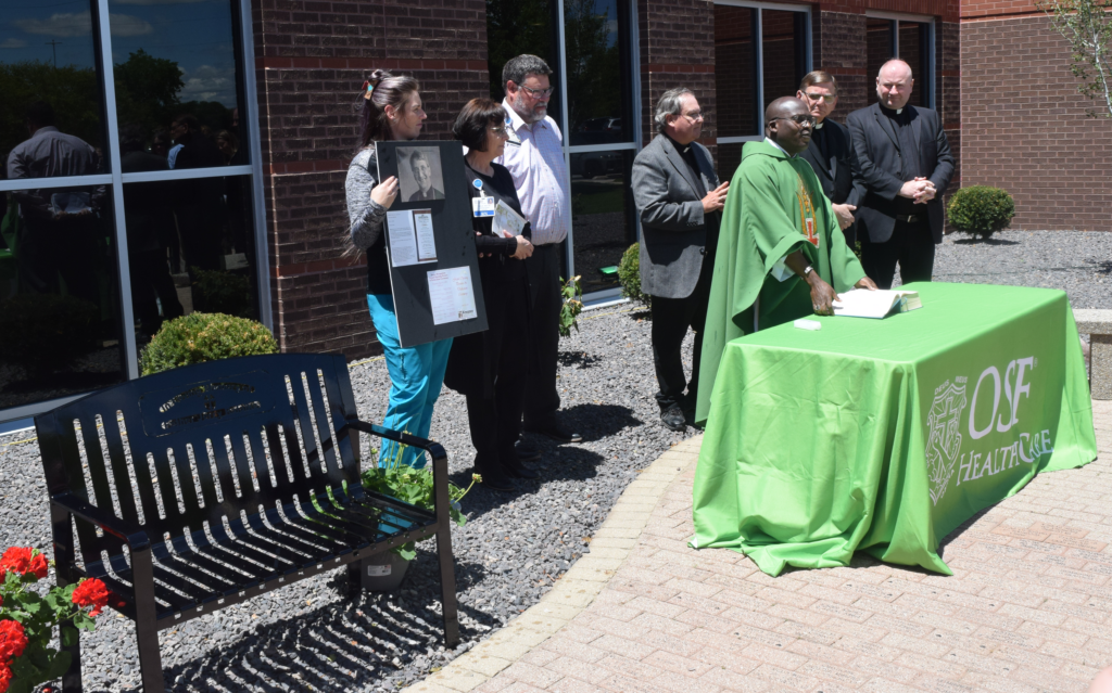 On Wednesday, friends of Father Jerry, as he was known here, gathered at OSF Saint Luke Medical Center for the dedication of a new bench that has been installed in his honor.