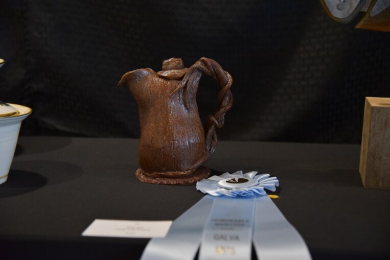 In the three-dimensional category, Jeff Goard’s wheel-thrown with porcelain and electric fired motif tea pot, titled “Delightful,” was awarded first prize. He is the owner of Jeff Goard Pottery, where he produces and sells a variety of hand-thrown pottery. He frequently teaches classes for both beginner and accomplished potters.