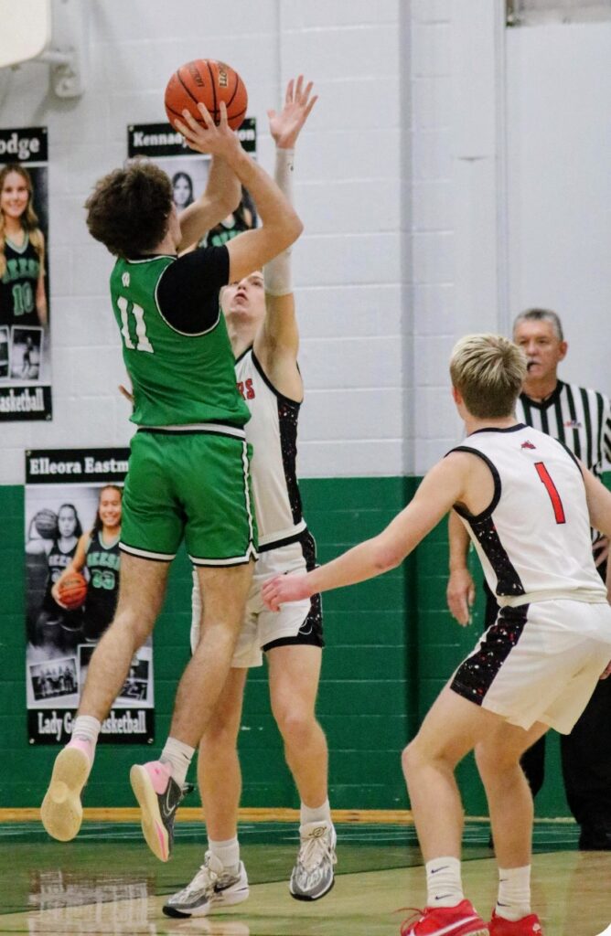 Damhoff scored six inside and Brady Read hit a 3-pointer to give Fulton an early 11-6 lead. Landon Sauer made a turnaround jumper to bring the Geese within one at 11-10. Trevor Tiesman then made a trey at the end of the quarter to give Fulton a 14-10 advantage.
