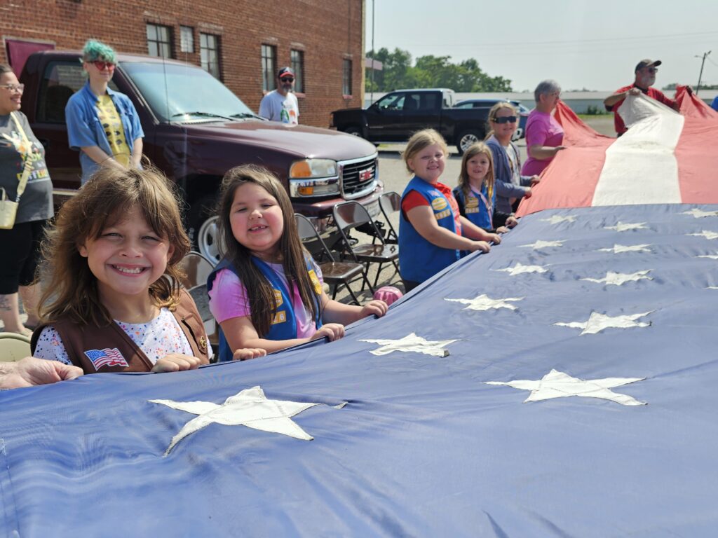 Girl Scout Troop 1626 from Sheffield joined the event and lent a hand to the KVC members at retiring worn-out flags. The scout leaders said the girls are working on their flag ceremony badge and visited Kewanee to participate.