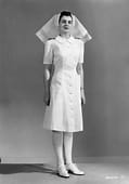 To indicate virtue and cleanliness, nurses wore white uniforms, white pantyhose and white shoes. (Hair had to be pulled into a bun, makeup, and nail polish were taboo, and only unmarried ladies could apply). The white cap remained, however, with each nursing school having its own distinctive design.