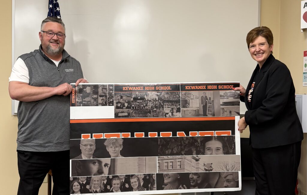 During the presentation, Supt. Baney shared a preview of the custom wall wrap designed for the space. The superintendent has worked closely with the designer to finalize a vision that celebrates Kewanee High School’s rich history, education, athletic heritage and school pride.