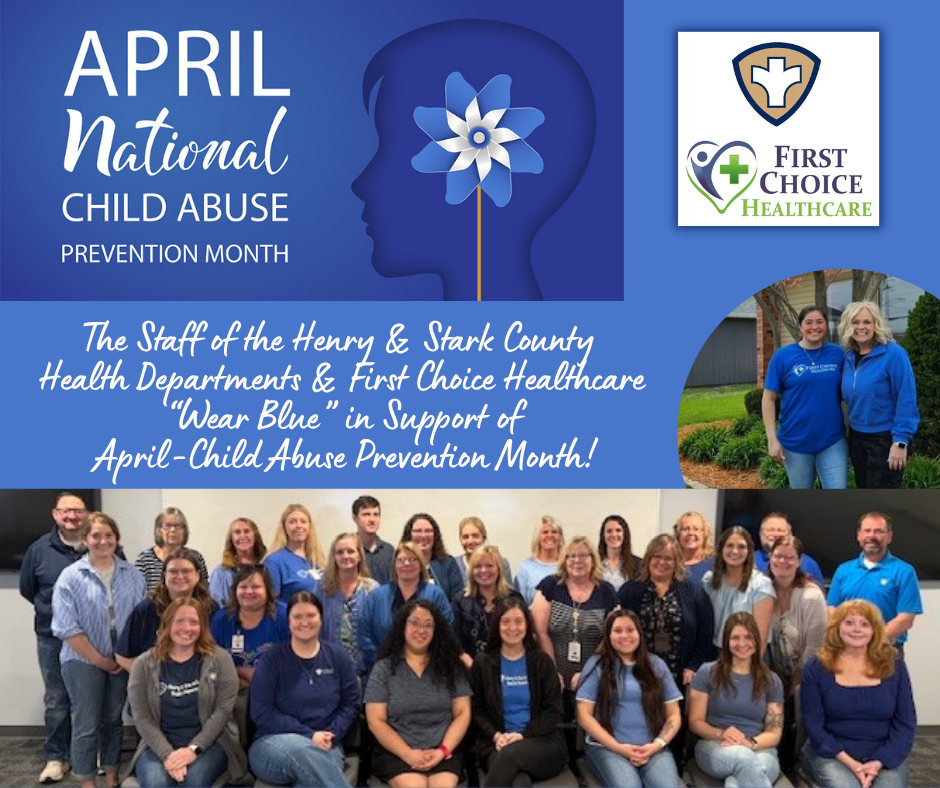 The staff of the Henry and Stark County Health Departments and their First Choice Healthcare Clinics in Kewanee, Colona and Toulon are wearing blue in honor of April Child Abuse Prevention Month.