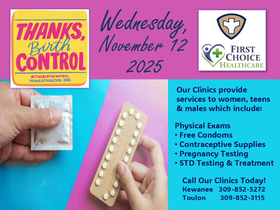 With this in mind, the health department believe Thanks Birth Control Day is an opportune time to remind area residents that their First Choice Healthcare Clinics offer confidential services: