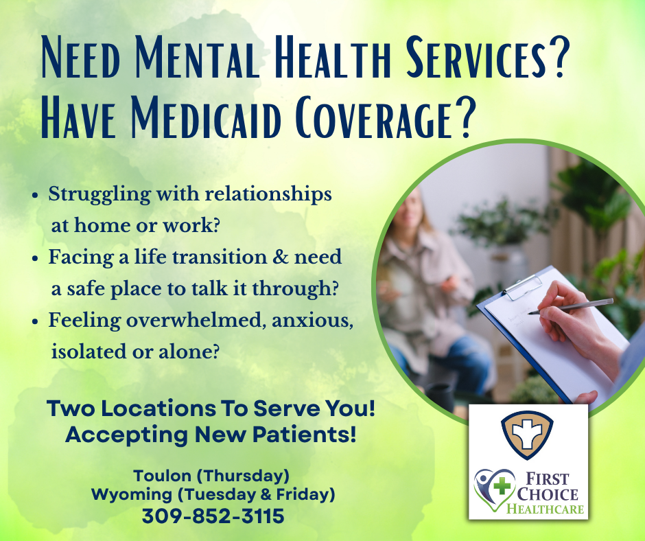 For more information or to schedule an appointment call their First Choice Healthcare locations at Kewanee 309-852-5272; and Toulon 309-852-3115. You may also find them on Facebook at First Choice Healthcare or Follow them on Twitter and Instagram.