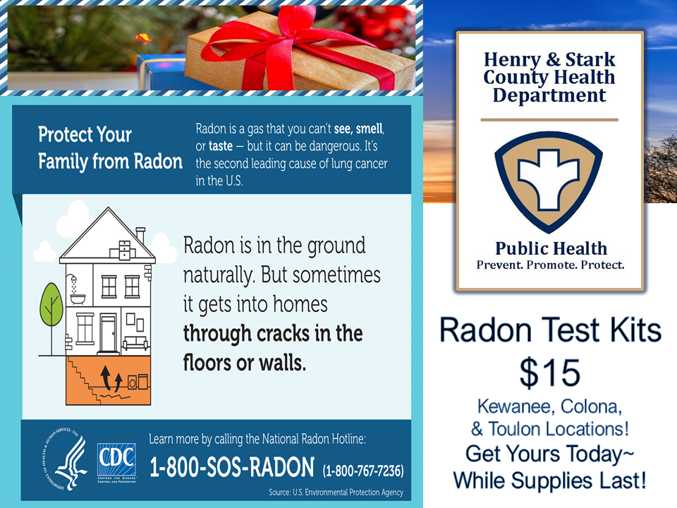 The Environmental Health Division of the Henry and Stark County Health Departments announce they have radon home test kits available for purchase through their offices in Kewanee, Colona and Toulon. The kits are being offered at the low cost of $15 per kit.