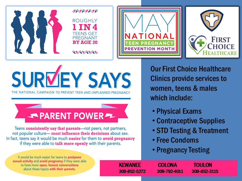 May has been designated National Teen Pregnancy Prevention Month and the Henry and Stark County Health Departments have family planning and reproductive health services available at their First Choice Healthcare Clinic.