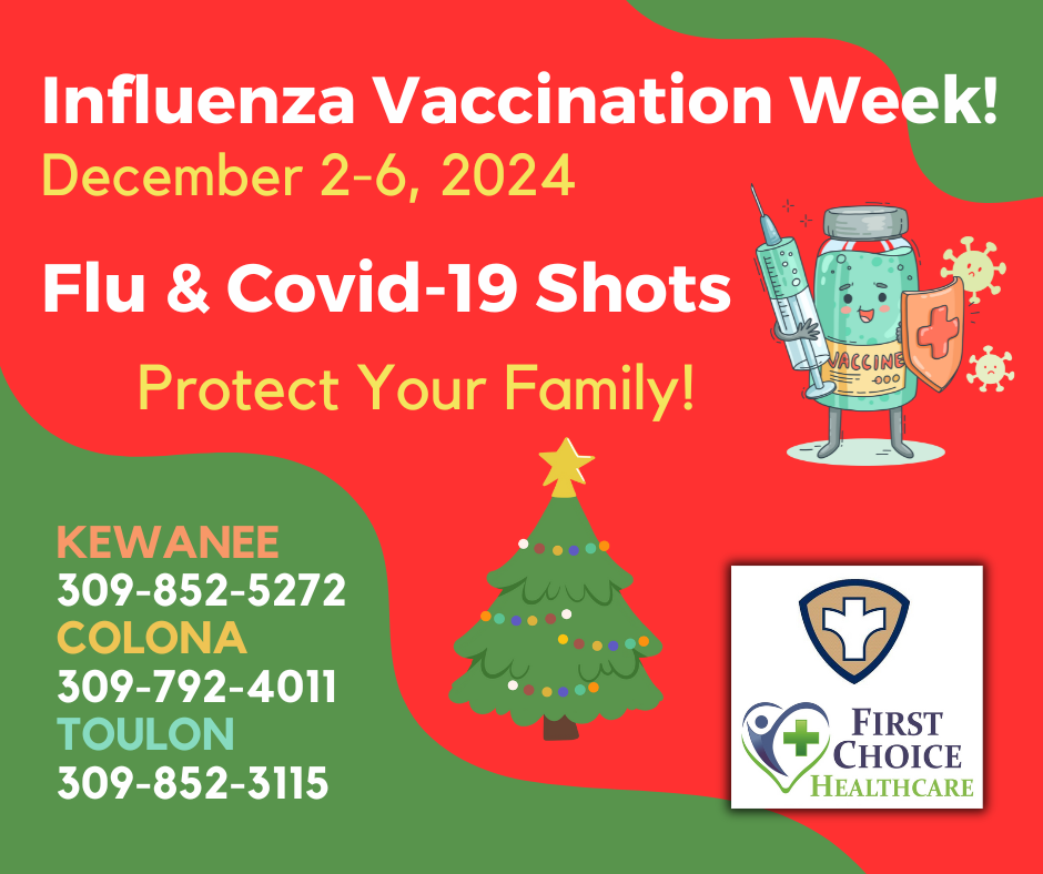 The Henry and Stark County Health Departments and their First Choice Healthcare Clinics in Kewanee, Colona and Toulon are announcing that Dec. 2-6 is National Influenza Vaccination Week.